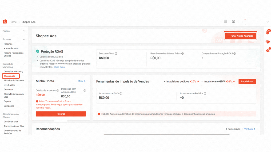 Após a publicação do seu anúncio, ele entrará automaticamente na fase de aprendizado, na qual a Shopee buscará estabilizar o desempenho do anúncio. Durante essa fase de aprendizado, é esperado que haja flutuações no ROAS à medida que o algoritmo se estabiliza. Portanto, é recomendado que os anunciantes não façam alterações nas configurações do anúncio durante esse período.
