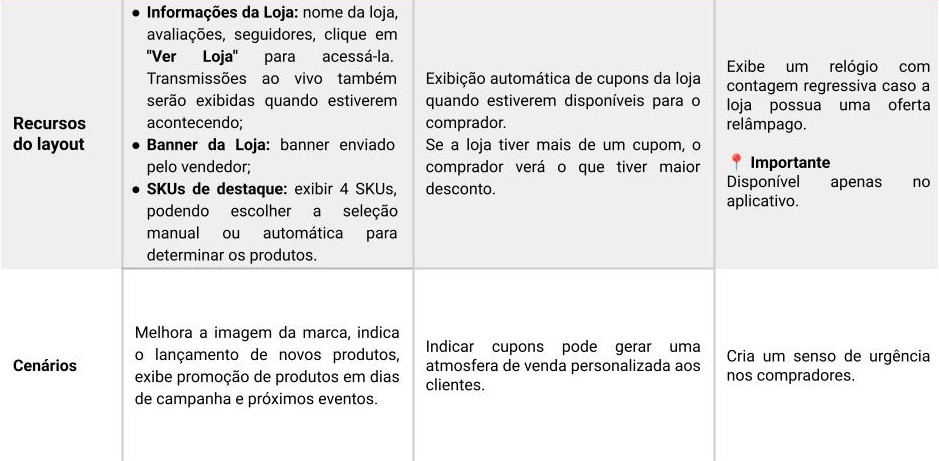 Os Anúncios de Busca de Marca são um recurso eficaz para impulsionar o desempenho ao colocar sua loja e seus produtos no topo dos resultados de busca quando compradores estão pesquisando palavras-chave da sua marca. A ferramenta aprimora a imagem da marca por meio de informações essenciais, como nome da loja, banner, principais produtos. Além disso, chamam a atenção do usuário ao adaptar os elementos do modelo para exibição de cupons ou ofertas relâmpago.