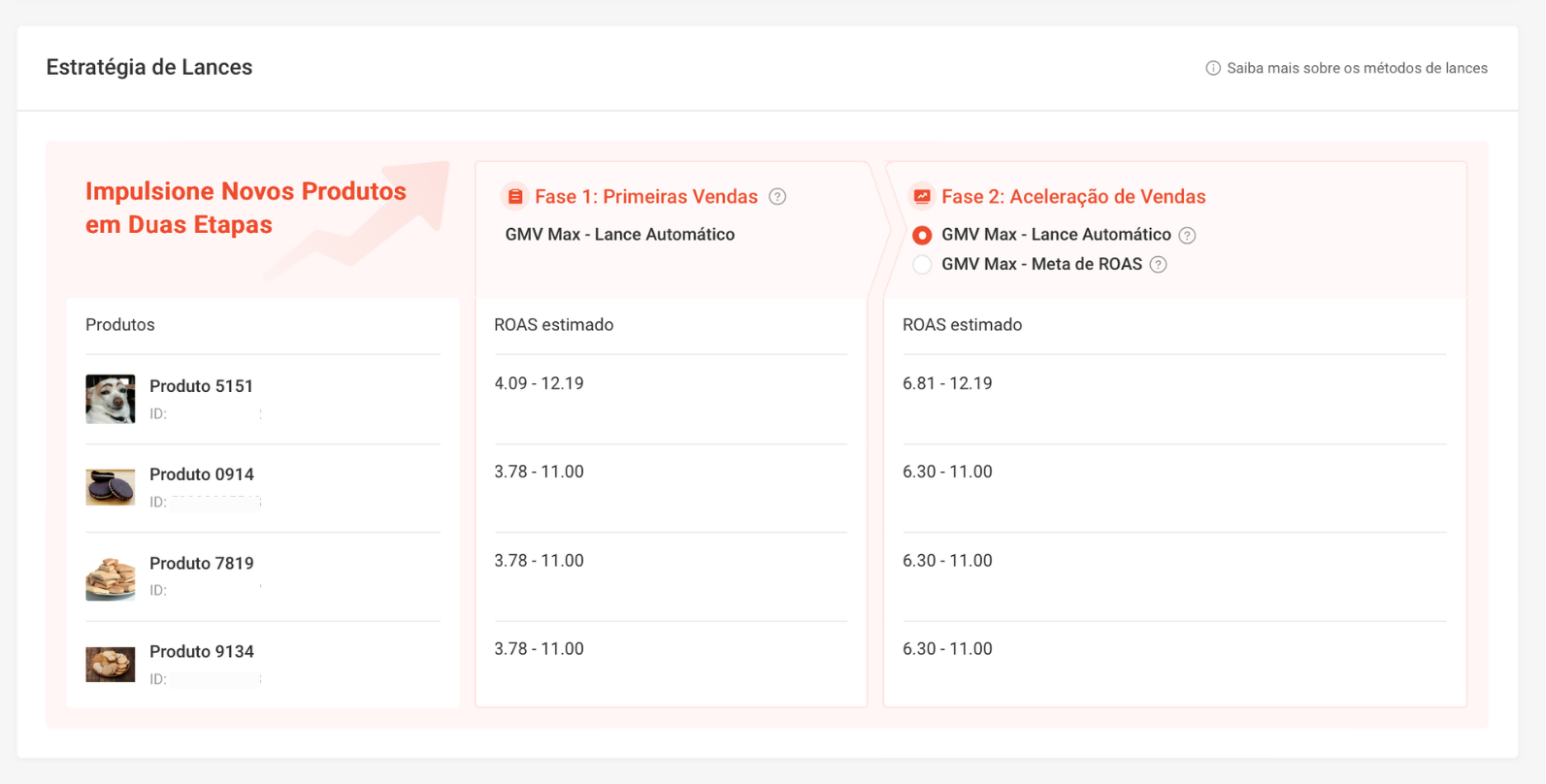 Sim. Assim que sua campanha atingir a Etapa 2 e você selecionar GMV Max Custom ROAS como método de lance, será possível ativar o Rapid Boost.
